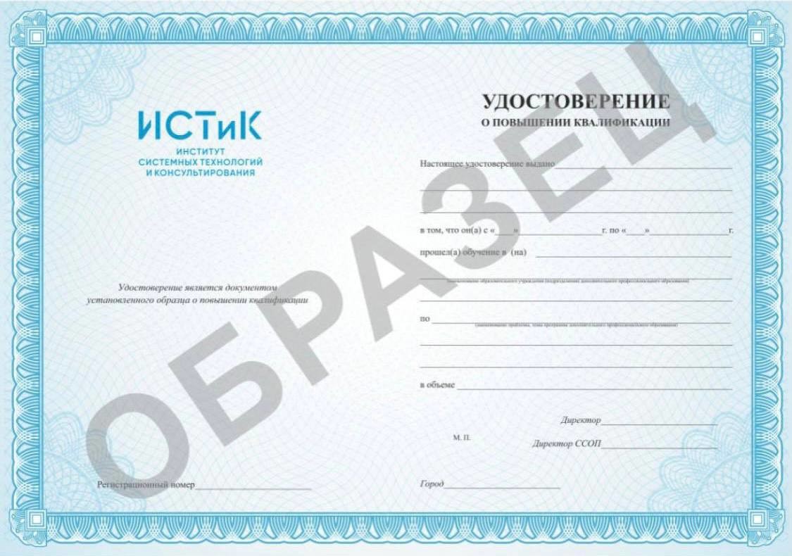 По итогам программы участник получает УДОСТОВЕРЕНИЕ О ПОВЫШЕНИИ КВАЛИФИКАЦИИ установленного образца.